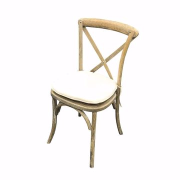 Our rustic wood cross back chairs are great for special events and look great with our beautiful harvest tables and are great with or without cushions. (not included in rental price)